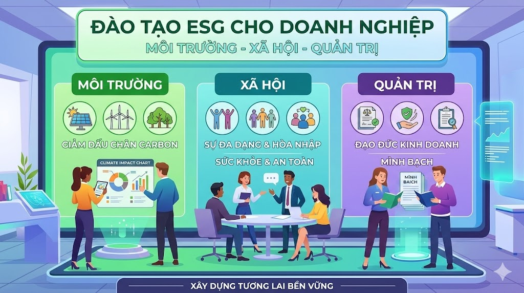 đào tạo ESG cho lãnh đạo, đào tạo ESG cho nhân viên, đào tạo ESG cho nhà cung cấp, đào tạo ESG cho quản lý cấp trung, đào tạo ESG cho doanh nghiệp sản xuất, đào tạo ESG cho ngân hàng, đào tạo ESG cho bất động sản, đào tạo ESG cho logistics, đào tạo ESG cho bán lẻ, đào tạo ESG cho công nghệ, đào tạo ESG cho tài chính